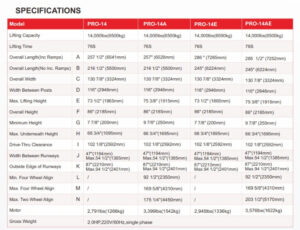 AMGO® PRO-14E, the extended length version of the PRO-14. Rated for 14,000 lbs. this lift is ideal for heavy duty trucks, vans, or cars.