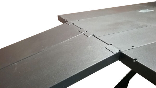 - 1/4″ laser cut steel frame with integrated safety locks