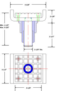The flanged base includes a rubber pad attached to the bottom, with a steel flange on both sides to securely keep the frame in place while on the lift.