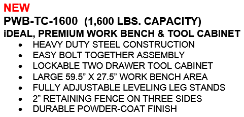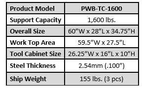 Experience unmatched stability with the Ideal PWB-TC-1600 Premium Workbench with drawers. Ideal for any bike shop or industrial area, order today! Availble in Black or Blue.