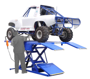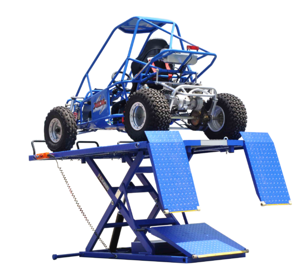 The Ideal U-2200IEH-XR UTV heavy duty lift is powered by an electric/hydraulic cylinder that raises the table to an amazing 47″ height. With a weight rating of 2,200 lbs., this UTV lift table is ideal for a wide range of off-road vehicles, golf carts, and more. An ingenious side extension design has a center drop-down section that allows you to get up and close to the vehicle.