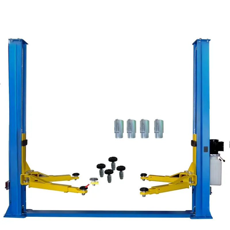 The KaTool ME-H1000 Two Post Lift offers 10,000 lb. capacity, CE certification, baseplate design, and dual hydraulic cylinders—ideal for the home or shop.