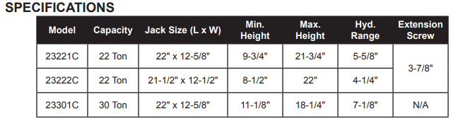 The heat treated extension screw and patented built in by-pass ensures reliability without damaging the jack when you’re just not exactly sure how much weight you’re lifting.