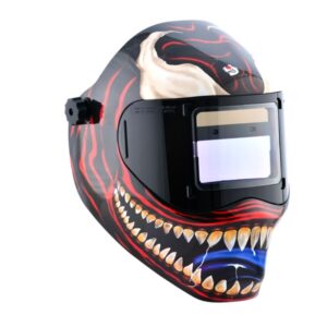 SavePhace 40VizI2 Series Kannibal welding helmet helmet with 40 square inch viewing at 180° from ear to ear. Automatic ADF from shade 4 to 9/13 in .3ms!