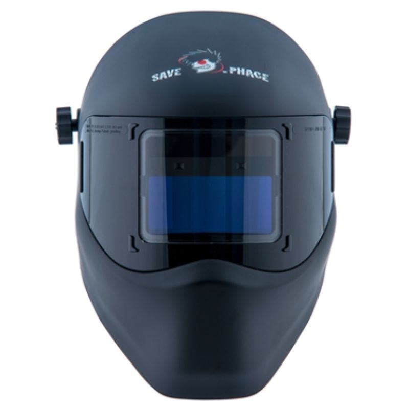 SavePhace 40VizI2 Series MO2 Welding Helmet helmet has a 40 square inch viewing at 180° from ear to ear. Fully Automatic ADF from shade 4 to 9/13 in .3ms!