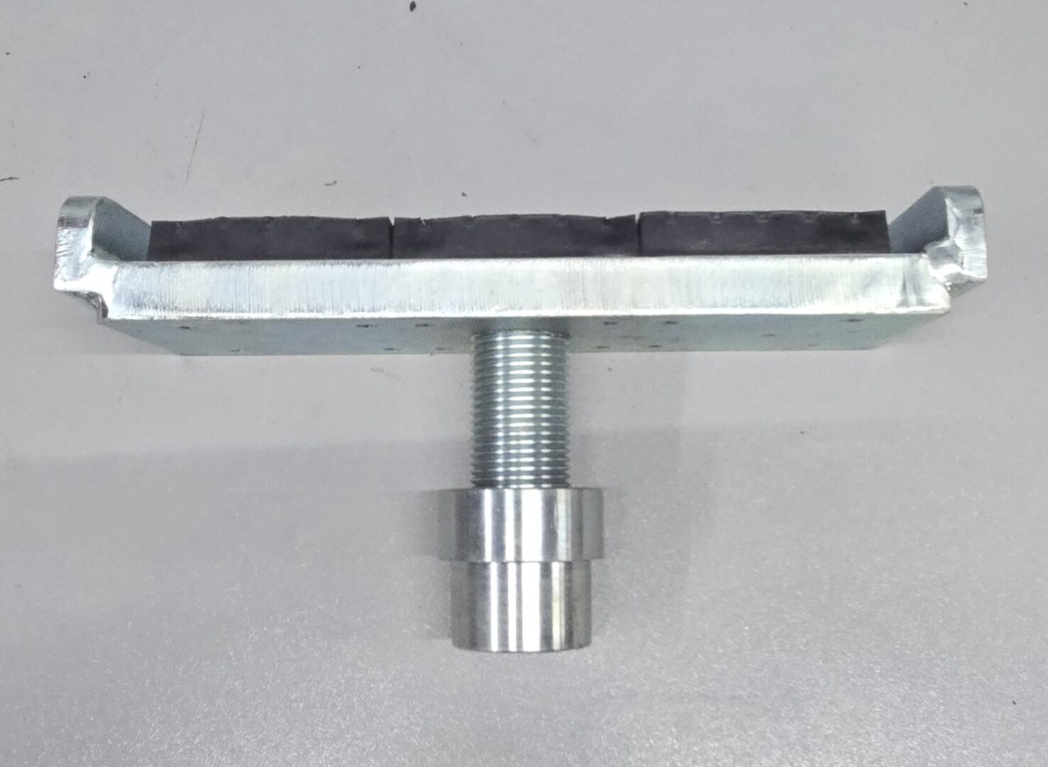 The extra wide base includes three rubber pads attached across the bottom base, with a steel flange on both sides to securely keep the trucks frame in place while lift.