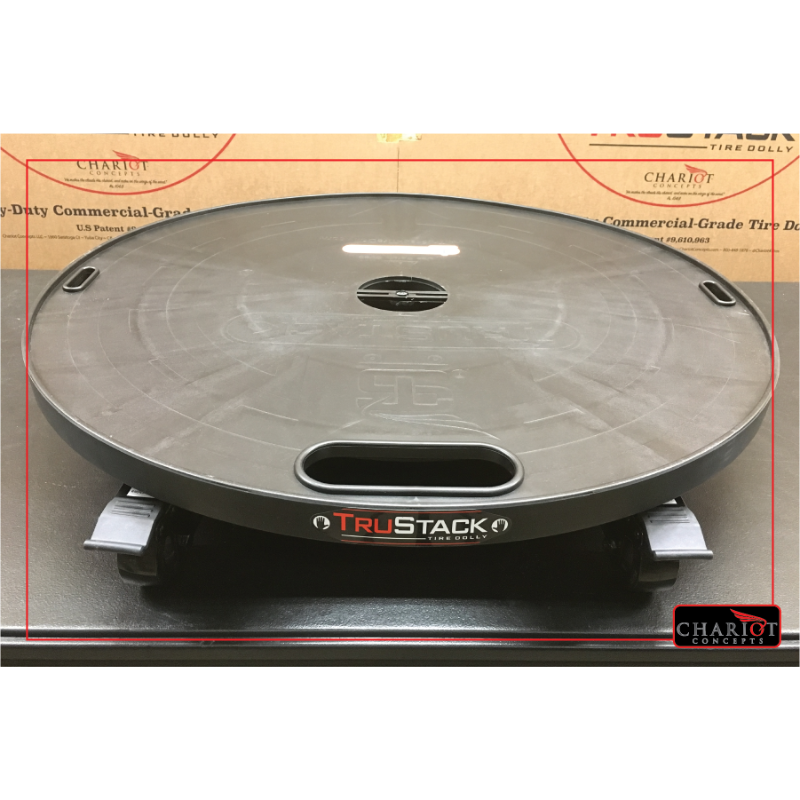 TruStack Tire Dolly by Chariots Concept provides the safest easiest way to display your tires and move them around the shop or store.