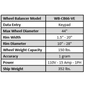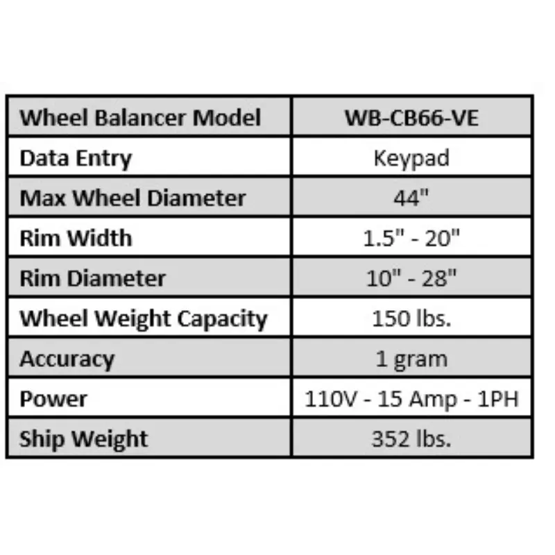 When you choose the Tuxedo WB-CB66-VE Wheel Balancer, you get: